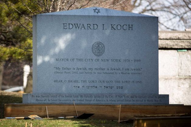 Koch requested that the marker bear the Star of David and the words from the Hebrew prayer Shema Yisrael, "Hear O Israel, the Lord our God, the Lord is One" as well as the last words of journalist Daniel Pearl before he was murdered by Islamic terrorists in 2002: "My father is Jewish. My mother is Jewish. I am Jewish."[52] He died 11 years to the day after Daniel Pearl.[53] A final epitaph Koch wrote himself follows: "He was fiercely proud of his Jewish faith. He fiercely defended the City of New York, and he fiercely loved its people. Above all, he loved his country, the United States of America, in whose armed forces he served in World War II